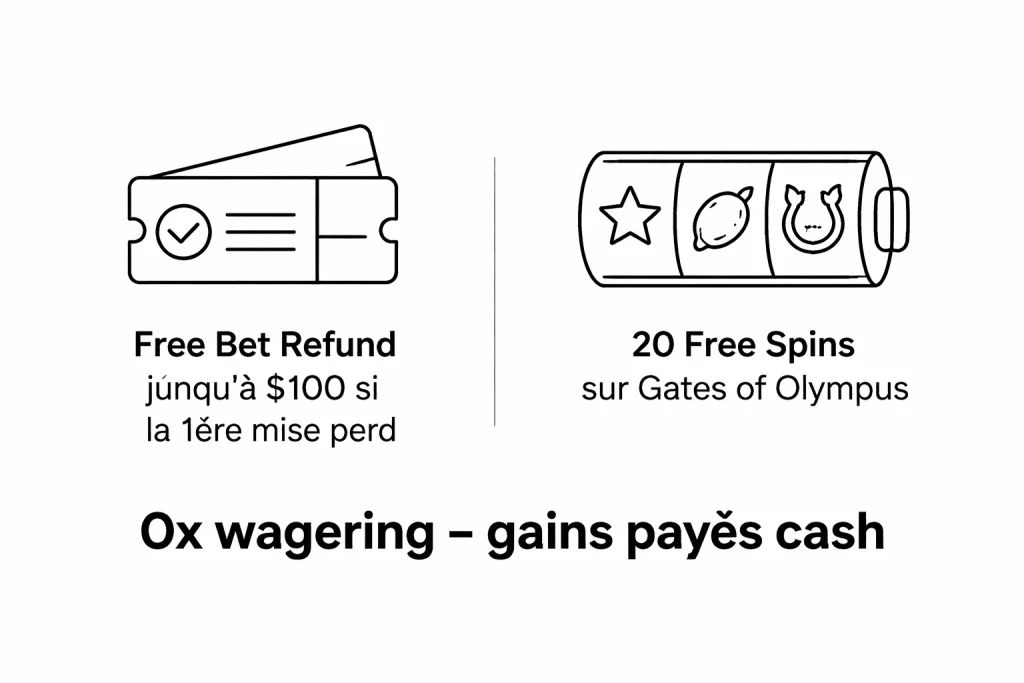 • Aucun wagering sur le bonus sport (0x) — gains payés en cash direct